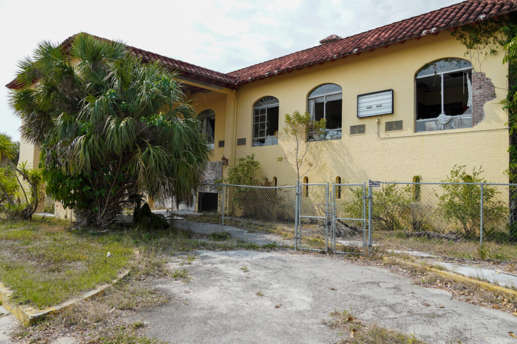 At the tail end of the three hour drive, the GPS led us through what looked like a very nice Naples neighborhood of townhomes – mowed lawns, shiny SUVs, white picket fences. “This can’t be right,” I thought. But then, there it was: the crumbling, desolate hotel looming from behind the pristine suburb like a scene straight out of Edward Scissorhands.